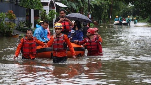 “Air tiba-tiba naik cepat. Tadi sempat sampai sepinggang, sekarang lebih tinggi lagi,” ujarnya.