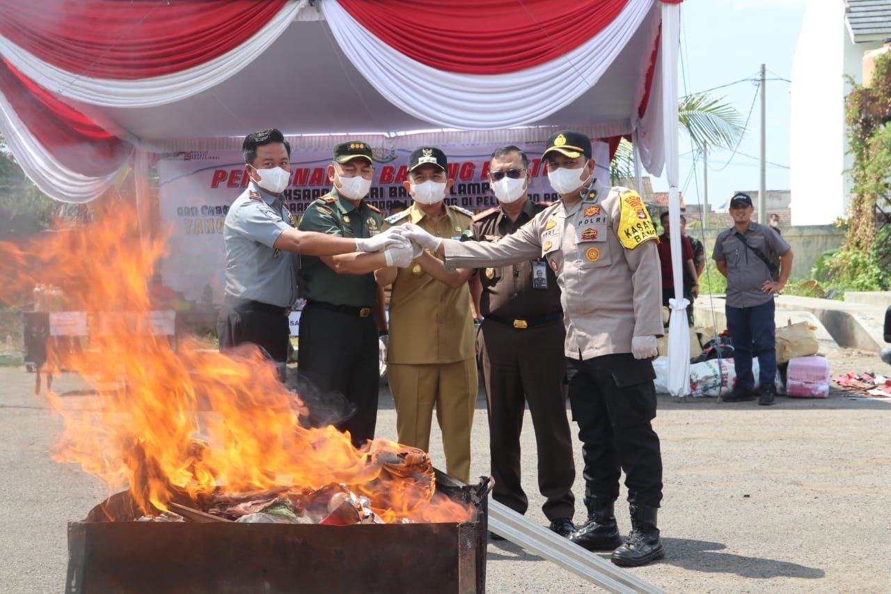 Kegiatan pemusnahan barang bukti hasil 217 perkara ini, digelar oleh Kejaksaan Negeri (Kejari) Bandar Lampung. Sejumlah Forkopimda Kota Bandar Lampung atau yang mewakili tampak hadir diantaranya yakni Pjs. Wali Kota Bandar Lampung, Budhi Darmawan.
