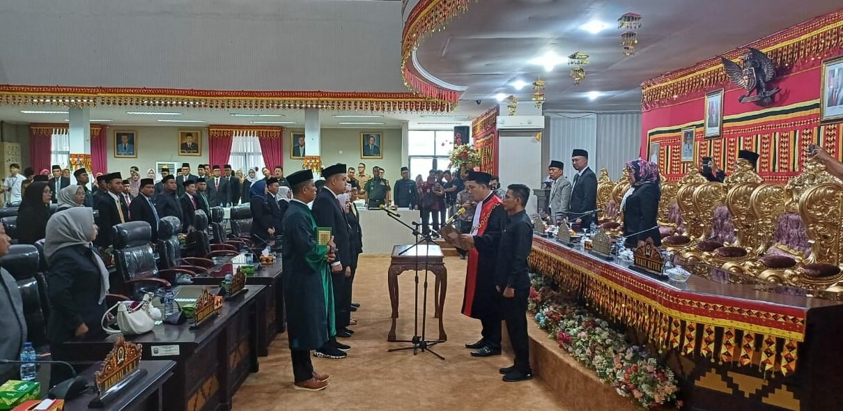 Pelantikan dan pengucapan sumpah pimpinan DPRD tesebut dipimpin langsung oleh Ketua Pengadilan Negeri Kalianda Kelas IB, Arizal Anwar, Bertempat di ruang Sidang utama Kantor DPRD setempat, Senin (14/10/2024).