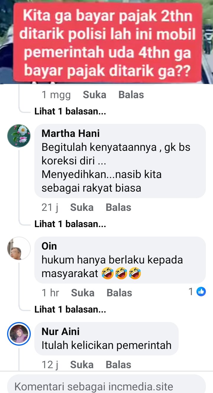 “Kita gak bayar pajak dua tahun, langsung ditarik polisi. Ini mobil pemerintah udah empat tahun gak bayar pajak, kok gak ditarik ya?” tulis pengunggah video tersebut.