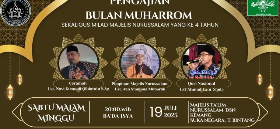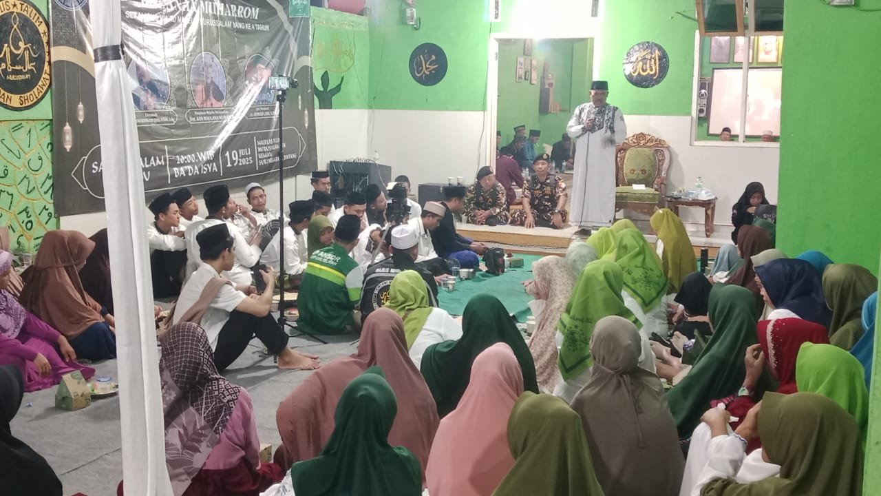 Lampung Selatan, INC MEDIA — Majelis Ta’lim Nurussalam Dusun Kemang, Desa Sukanegara, Kecamatan Tanjung Bintang, Lampung Selatan, menggelar pengajian akbar dan perayaan Milad ke-4 pada Sabtu malam (19/7/2025). Ratusan jamaah dari berbagai wilayah hadir menyatukan doa dan syukur dalam kegiatan yang berlangsung hingga larut malam.