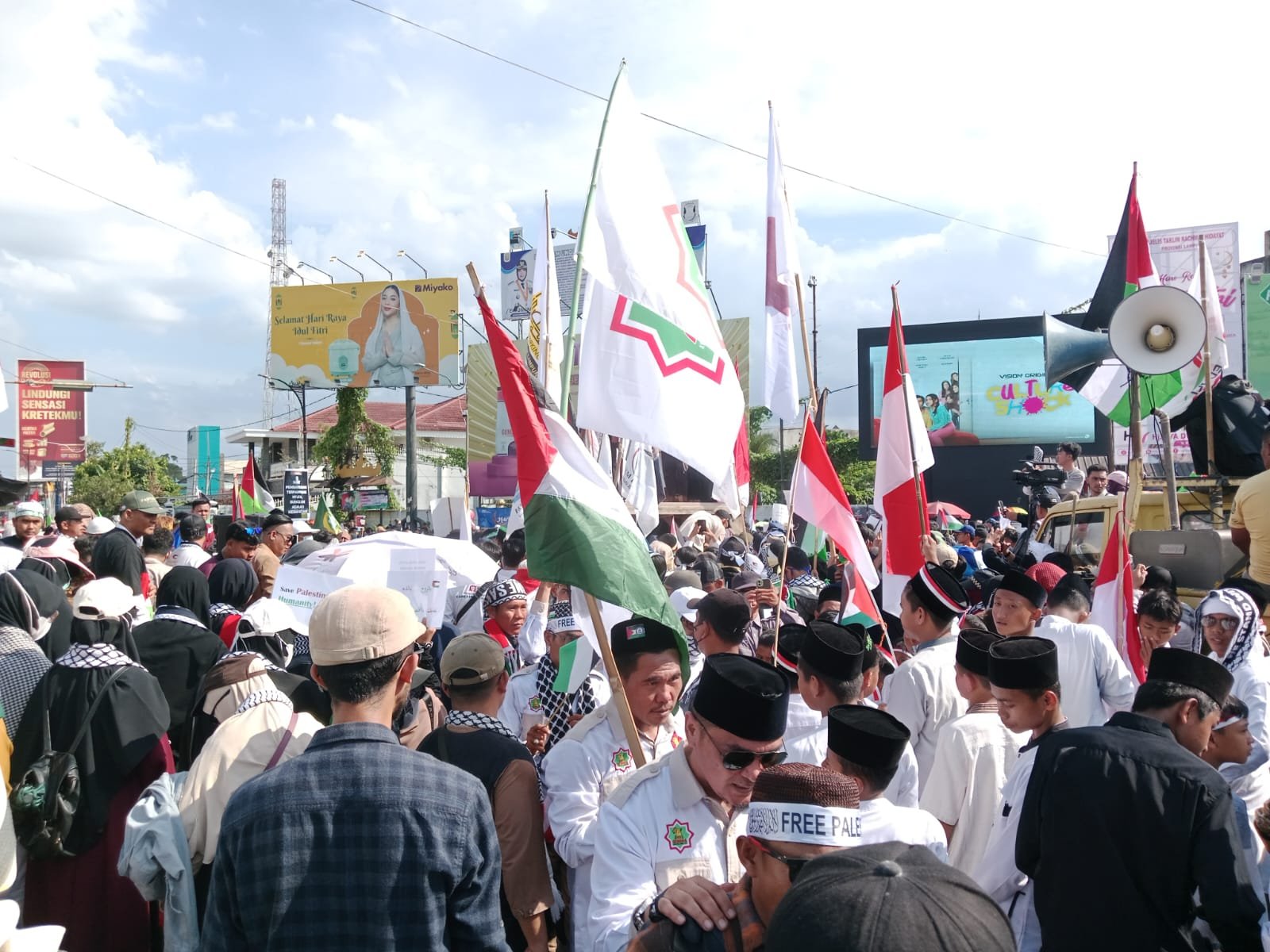 BANDAR LAMPUNG, INC MEDIA — Bundaran Tugu Adipura, ikon jantung Kota Bandar Lampung, berubah menjadi lautan manusia, Sabtu (19/4/2025). Ribuan warga dari berbagai elemen—mulai dari ormas, mahasiswa, tokoh agama, hingga anak-anak—turun ke jalan dalam aksi damai solidaritas untuk Palestina.