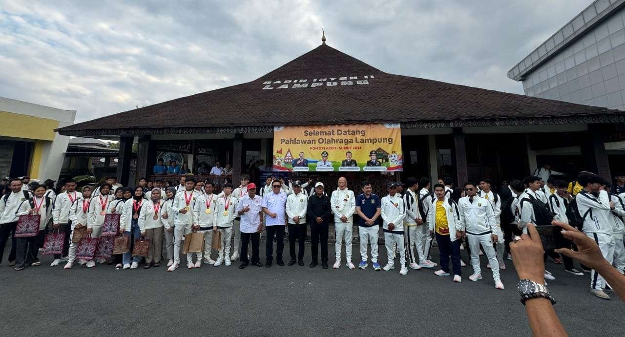 LAMPUNG, INC MEDIA — Penjabat (Pj) Gubernur Lampung Dr. Drs. Samsudin S.H., M.H., M.Pd menyambut hangat kedatangan para atlet, pelatih, asisten pelatih, manager dan seluruh Kontingen Lampung pada Pekan Olahraga Nasional (PON) XXI Aceh Sumut 2024 di VIP Bandara Raden Intan ll, Sabtu (21/09/2024).