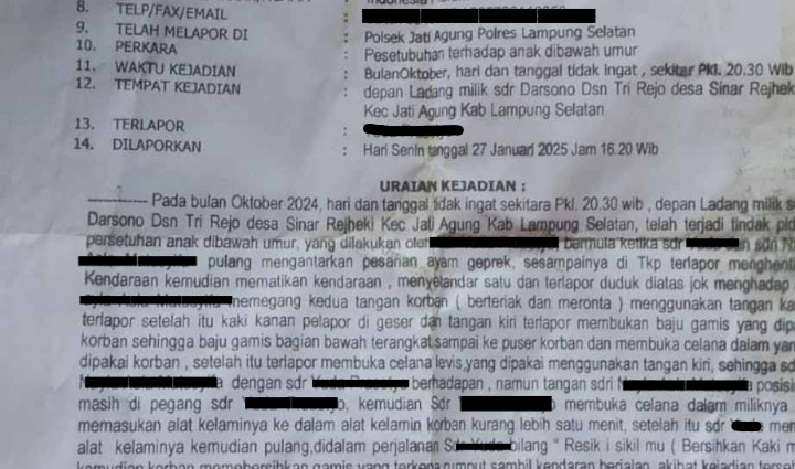 Kasus Persetubuhan Anak di Jati Agung Masih Menggantung, Pelapor Tuntut Kejelasan Proses Hukum 2025-04-26 By: Haris Efendi On: 26 April 2025 In: Hukum