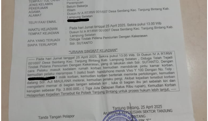 Dobrak Rumah Janda di Tanjung Bintang, Pelaku Rampas HP dan Tinggalkan Luka 2025-04-29 By: Haris Efendi On: 29 April 2025 In: Kriminal