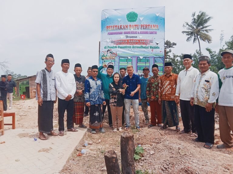Lampung Selatan (INC Media) — Anggota DPRD Kabupaten Lampung Selatan, Amelia Nanda Sari, S.H., M.H., resmi meletakkan batu pertama pembangunan Gedung Baru Ruang Kelas dan Asmara Santri Pondok Pesantren (Ponpes) Arroudhotul Wahida Jln. Sultan Pesirah Lappung Dusun V B Jati Sari, Desa Jatimulyo Kecamatan Jati Agung Kabupeten Lampung Selatan, Minggu (2/2/2025).
