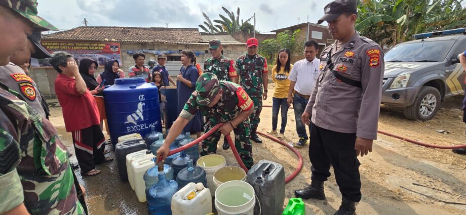 Pendistribusian air bersih tersebut dilaksanakan di dua titik lokasi yang ada di desa Serdang Kecamatan Tanjung Bintang Kabupaten Lampung Selatan,Kamis (5/9/2024).