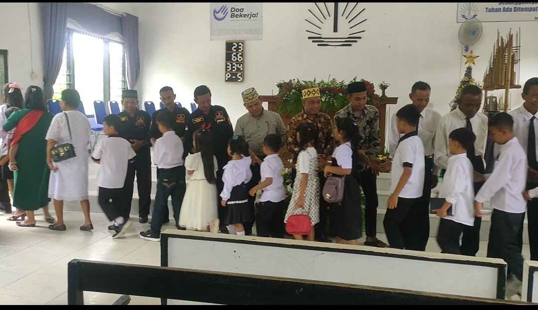 Sementara itu, suasana didalam gereja pun semakin hangat dan akrab dengan kehadiran seluruh jajaran anggota PAC GRIB Jaya Kecamatan Negeri Katon.