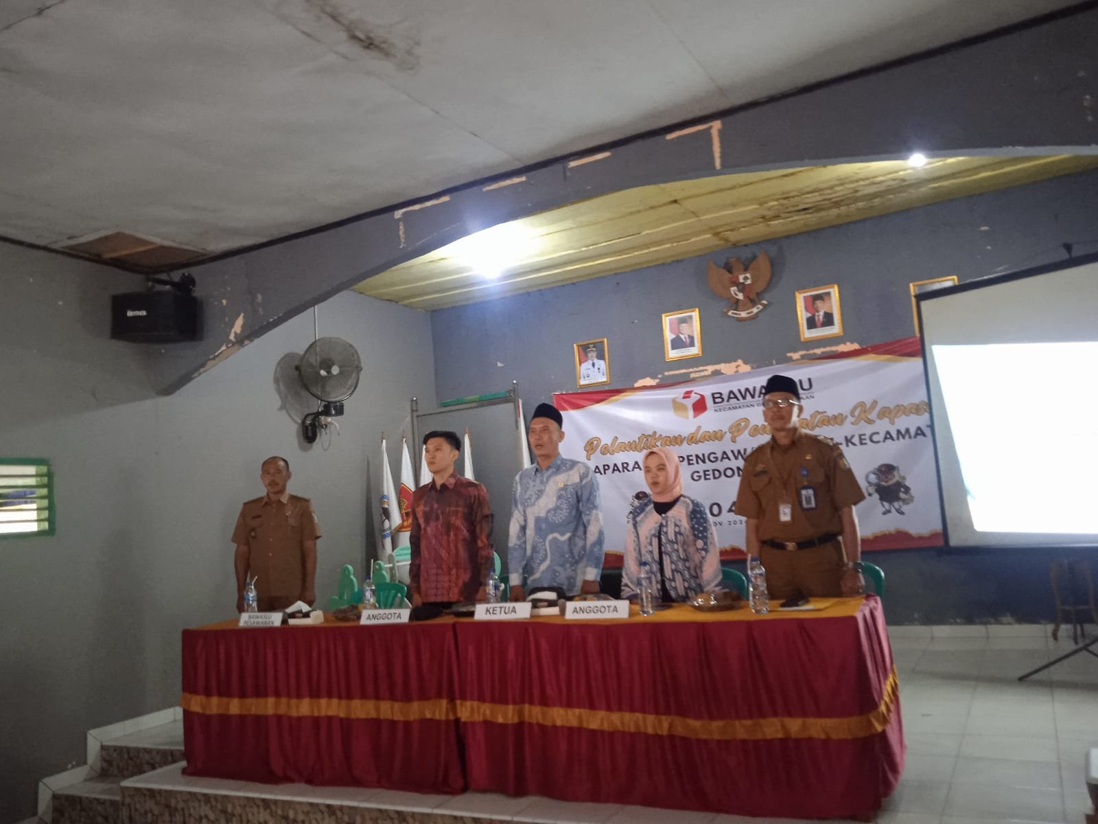 Ketua Panitia Pengawas Pemilu (Panwaslu) Kecamatan Gedong Tataan Dedi Erhandi dalam sambutannya mengatakan, bahwa dalam kesempatan ini dirinya mengucapkan selamat terhadap Pengawas TPS yang telah di lantik yang mana sebelumnya telah melalui rangkaian seleksi administrasi, wawancara, sebanyak 161 Pengawas TPS.